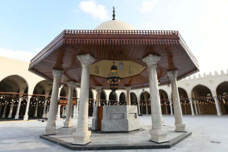 وأوضح: تضمنت أعمال التطوير ترميم جميع العناصر الأثرية بالمسجد، ورفع كفاءة شبكة تخفيض منسوب المياه الجوفية وشبكة صرف مياه المطر ، وإنشاء شبكة وقاية من الحريق، وتطوير شبكات الإضاءة والصوتيات الداخلية والخارجية وتوسعة المدخل الرئيسى للمسجد من شارع حسن الأنور ليكون بعرض 30 مترا، وكذا إنشاء ساحة خارجية لاستقبال الزائرين.