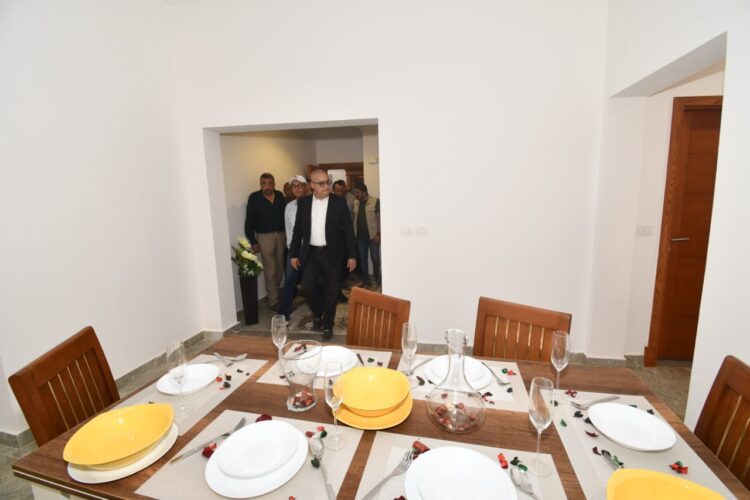 وتفقد وزير الإسكان خلال جولته بالحي، أعمال الزراعات المنفذة وتنسيق الموقع للعمارات، كما تجول بإحدى العمارات، وتفقد وحدة سكنية تم تجهيزها وتأثيثها كنموذج وعينة بالمشروع، كما وجه الوزير بسرعة تنفيذ بعص الملاحظات البسيطة في أعمال التشطيبات وأماكن عنصر الإنارة الديكورية فيما بين العمارات.