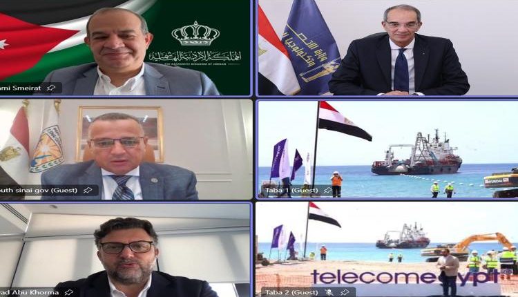 شهد الدكتور عمرو طلعت وزير الاتصالات وتكنولوجيا المعلومات، والمهندس سامي السميرات وزير الاقتصاد الرقمى والريادة بالمملكة الأردنية الهاشمية، واللواء خالد مبارك محافظ جنوب سيناء عبر تقنية الفيديو كونفرنس، عملية إنزال نظام الكابل البحرى عالى السعة “كورال بريدج” فى مدينة طابا بجمهورية مصر العربية.