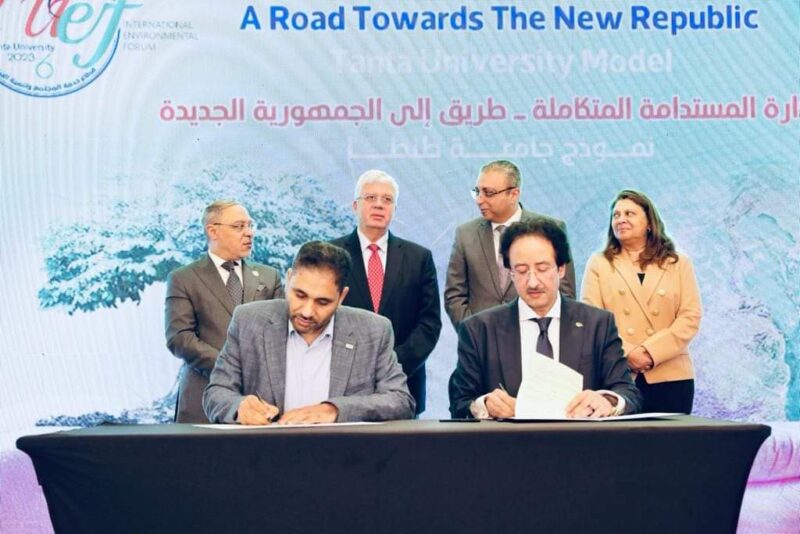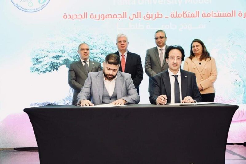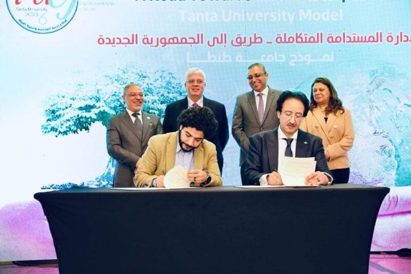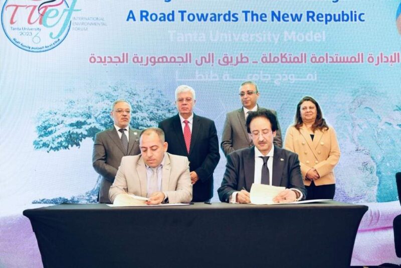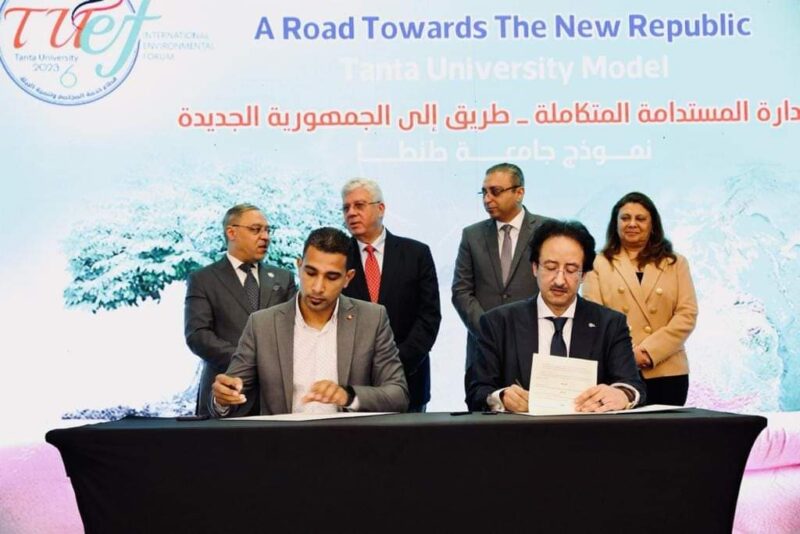 ووقع مذكرات التفاهم، الدكتور محمود سليم نائب رئيس الجامعة لشئون خدمة المجتمع وتنمية البيئة ورئيس المنتدى مُمثلًا عن جامعة طنطا، وعن شركة مايسك لخدمات الطاقة المهندس محمد محي عجلان رئيس مجلس الإدارة، وعن شركة إعمار الدلتا الأستاذ علي بدر مدير الموارد البشرية، وعن شركة ستار ترنس المهندس حمدي عبدالرحيم رئيس مجلس الإدارة، وعن شركة “أب أوت” المهندس أمير أبوعيسي رئيس مجلس الإدارة، وعن شركة Camp For English المهندس محمد زهران رئيس مجلس الإدارة، وعن دار الكهرباء للتوريدات الكهربية المهندس حمدي عبدالرسول رئيس مجلس الإدارة، وعن شركة سنابل الخير للحلول الزراعية المتكاملة المهندس محمد السيد.
