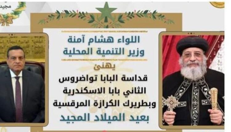 وقال وزير التنمية المحلية – في برقية التهنئة – “يسعدني أن أتقدم لقداستكم بأسمي وأرق واجمل التهاني القلبية بمناسبة عيد الميلاد المجيد داعيا المولى عز وجل أن يعيد هذه الأيام علي قداستكم وعلى جميع أقباط مصر بالخير واليمن والبركات وعلى مصرنا الحبيبة بالأمن والأمان والاستقرار في ظل القيادة الحكيمة والرشيدة للرئيس عبد الفتاح السيسي وأن يمتعكم بموفور الصحة والعافية.. وكل عام وقداستكم بخير”.