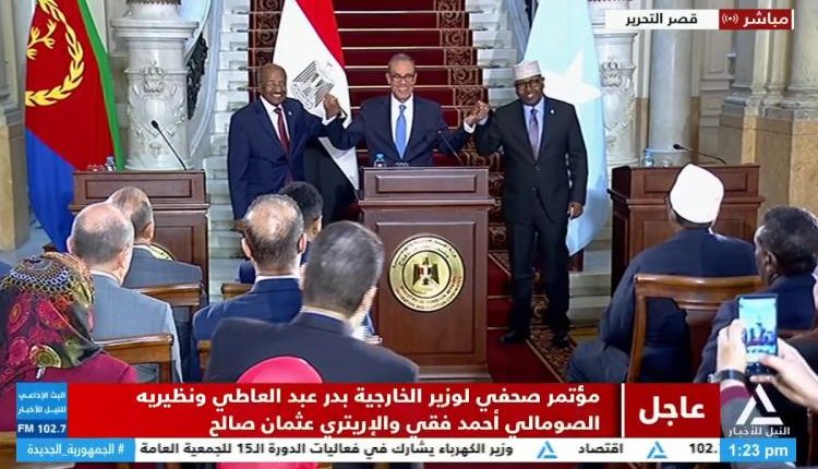 جاء ذلك خلال مؤتمر صحفى مشترك مع عثمان صالح محمد وزير خارجية إريتريا، وأحمد معلم فقى وزير خارجية الصومال.