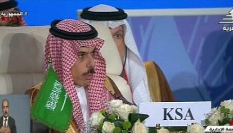 وأكد وزير الخارجية السعودي، خلال كلمته بقمة القاهرة للسلام، أن الاحداث المأساوية في فلسطين تحتم علينا التحرك العاجل لوقف إطلاق النار، معلنا رفضه بشكل قاطع تهجير الفلسطيين من أراضيهم.
