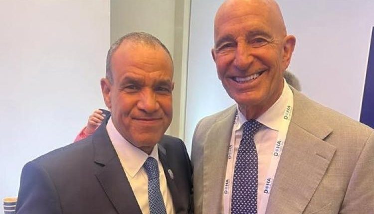 التقي الدكتور بدر عبد العاطي وزير الخارجية والهجرة وشئون المصريين بالخارج، السفير توم باراك المبعوث الأمريكي الخاص إلى سوريا، على هامش منتدى الدوحة.