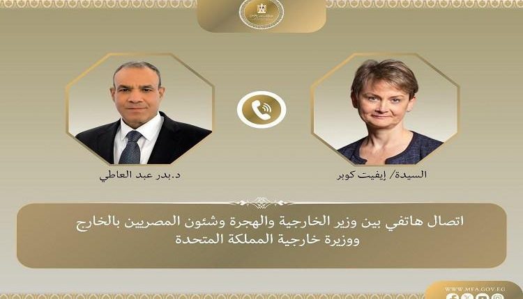 جرى اتصال هاتفى بين الدكتور بدر عبد العاطي وزير الخارجية والهجرة وشئون المصريين بالخارج و”إيفيت كوبر” وزيرة خارجية المملكة المتحدة، لبحث سبل تعزيز العلاقات الثنائية وتبادل الرؤى بشأن التطورات الإقليمية ذات الاهتمام المشترك.