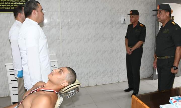 كما تفقد دورة العمل داخل مكتب التنسيق ولجان القومسيون الطبى ، أعقبه المرور على إختبارات اللياقة البدنية والسباحة وقفزة الثقة التى يتم خلالها تقييم القدرات البدنية لإنتقاء أفضل العناصر بناءاً على المعايير القياسية المقررة للإلتحاق ، وناقش عدد من الطلبة المتقدمين فى أساليب الإختبارات التى خضعوا لها خلال مختلف المراحل ، مثنياً على ما تحصل عليه المتقدمون من نتائج إيجابية فى ضوء المنافسة القوية التى تمكنهم من نيل شرف الإنضمام للقوات المسلحة .