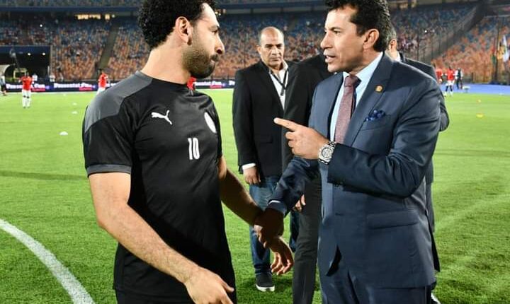 وزير الرياضة ورئيس اتحاد الكرة يكرمان “محمد صلاح” قبل انطلاق مباراة مصر وغينيا