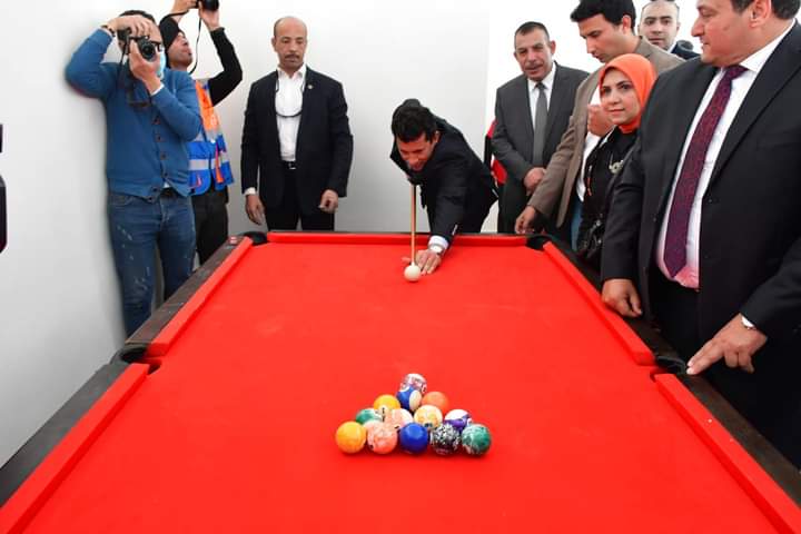 استهل وزير الشباب والرياضة جولته داخل المركز بافتتاح المبنى الإداري، وصالة مغطاة، ونادى المرأة، وصالات الأنشطة الرياضية، وملعب كرة القدم المطور، وملعب كرة السلة، بالإضافة إلى وضع حجر أساس إنشاء حمام سباحة بالمركز.