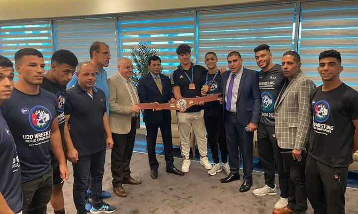 وزير الرياضة يستقبل أبطال منتخبنا تحت ٢٠ عامًا بمطار القاهرة عقب مشاركتهم ببطولة العالم للمصارعة الرومانية بالأردن