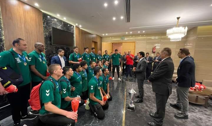 وزير الرياضة يستقبل شباب اليد الحاصلين علي بطولة بطولة إفريقيا بمطار القاهرة الدولى