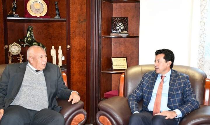 وزير الرياضة يستقبل محافظ الوادى الجديد لمناقشة إنشاء مضمار للهجن ومعدل تطوير مراكز الشباب والأندية بالمحافظة