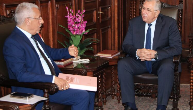 التقي السيد القصير وزير الزراعة واستصلاح مع د عبد الوهاب زايد الأمين العام جائزة خليفة الدولية لنخيل التمر والإبتكار الزراعى وبحث معه النهوض بصناعة النخيل وذلك بحضور د محمد سليمان رئيس مركز البحوث الزراعية
