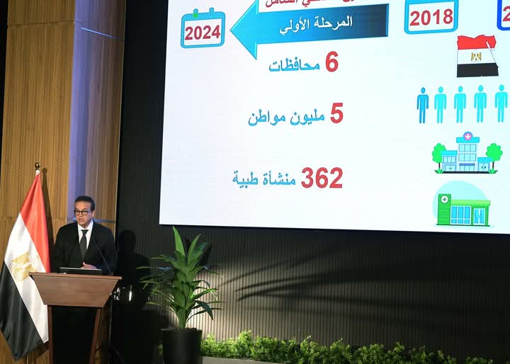وتحدث الوزير عن مستجدات المبادرات الرئاسية لتحسين الصحة العامة، بين عامي 2014 و2024، بإجمالي 14 مبادرة، قدمت 218 مليون خدمة، لـ 94 مليون مستفيد، في أكثر من 3,527 وحدة صحية.