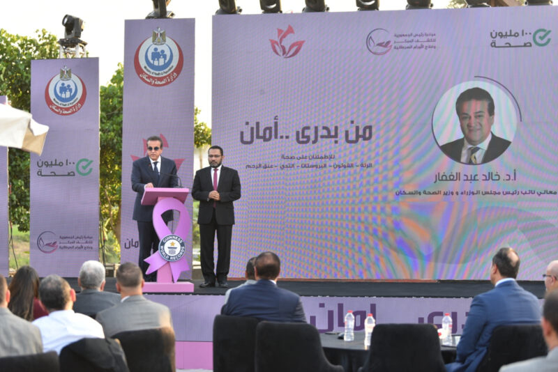 وخلال كلمته، أكد الدكتور خالد عبدالغفار، أن الاحتفالية تسلط الضوء على الإنجازات التي تحققت، والتوجهات المستقبلية الواعدة في مجال الصحة العامة، لا سيما فيما يتعلق بالكشف المبكر عن الأورام السرطانية، مشيراً إلى أن الدولة المصرية بقيادة فخامة الرئيس عبدالفتاح السيسي، تتبنى رؤية واضحة للنهوض بصحة المواطن، باعتباره الركيزة الأساسية للبناء ومحور التنمية وعماد المستقبل.