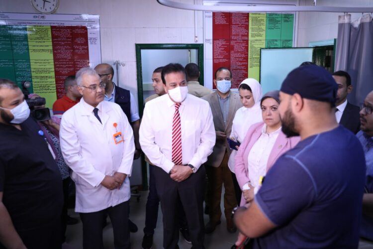 وزير الصحة يوجه بمراجعة أعمال التشطيبات النهائية ووضع آلية عمل مُطورة لنظام استقبال المرضى بمستشفى شبرامنت