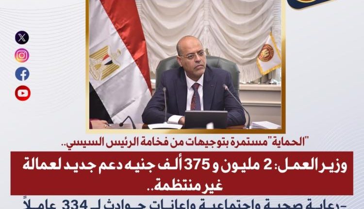 وزير العمل: 2 مليون و 375 ألف جنيه دعم جديد لعمالة غير منتظمة