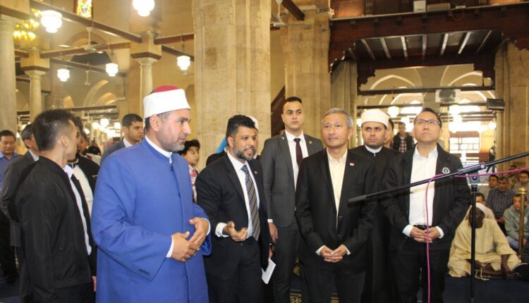 كما تفقد سعادته معالم الجامع الأزهر، وأروقته ومآذنه التاريخية العتيقة، التي تكشف الطبيعة الأثرية له، يرافقه الدكتور هاني عودة مدير عام الجامع الأزهر، للتعرف على تاريخ الجامع، وما يضمه من أروقة احتضنت طلاب العلم من جميع أنحاء العالم وخاصة دول شرق أسيا ومنها سنغافورة، والتي خصص لها بالجامع الأزهر رواقاَ، سُمي “رواق أهل جاوة”.، وزارت الظلّة الفاطمية والظلّة العثمانية ومنبر الجامع الأزهر، ثم المدرسة الجوهرية بالجامع الأزهر.