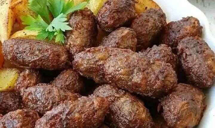 في وعاء كبير تجمع بين اللحم المفروم والبصل المبشور والبقدونس والكزبرة والثوم وجميع التوابل.
