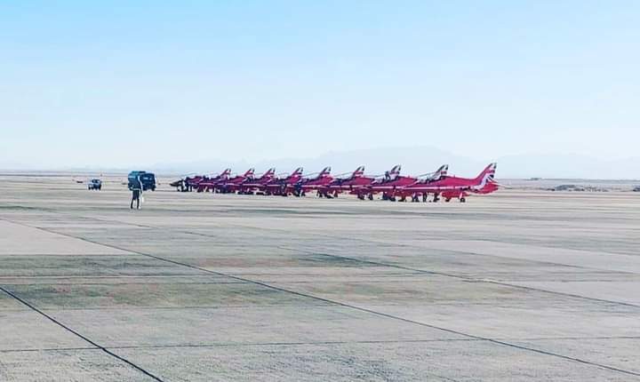 صرح المتحدث العسكري للقوات المسلحة المصرية عن وصول فريق الألعاب الجوية البريطانى ” RED ARROWS ” إلى إحدى القواعد الجوية المصرية جنوب مصر