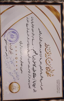 قدم وكيل الوزارة شهادة تقدير للطالبة الفائزة في المسابقة، متمنياً لها دوام التفوق والنجاح، ومزيداً من التقدم.