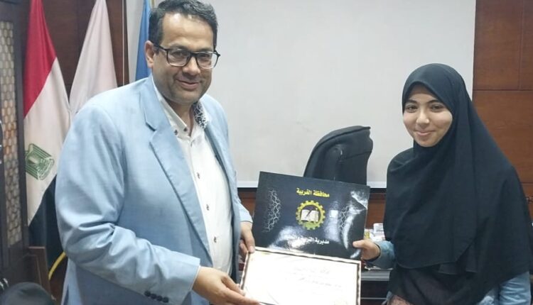 وكيل تعليم الغربية يكرم الطالبة ملك وليد كامل لحصولها على المركز الخامس الجمهوري في مسابقة الأزهر الشريف لحفظ القرآن الكريم