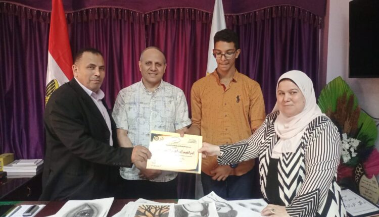 كرم محمد عبدالله، وكيل وزارة التربية والتعليم بكفر الشيخ، في مكتبه اليوم الطالب إبراهيم إبراهيم محمد السيد الطالب بالصف الثاني بمدرسة سيدي غازي التجارية، الذي تم تبني موهبته من خلال مركز الإبداع، وتم تسليط الضوء علي أعماله الفنية المميزة، وذلك بحضور داليا عليبة، مديرة مركز الإبداع، ومصطفى العراقي، المشرق الفني على المركز.