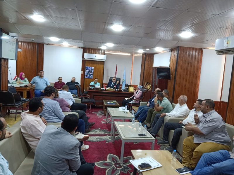 الاجتماع بحضور الدكتور سمر عارف وكيل المديرية والدكتور أحمد عبدالعليم مساعد وكيل الوزارة لشئون الرقابة والمتابعة والدكتور محمد العدولي مدير إدارة الطب العلاجي والدكتور صلاح زغلول مدير إدارة المستشفيات والدكتور جورج سامي مدير إدارة المتابعة.