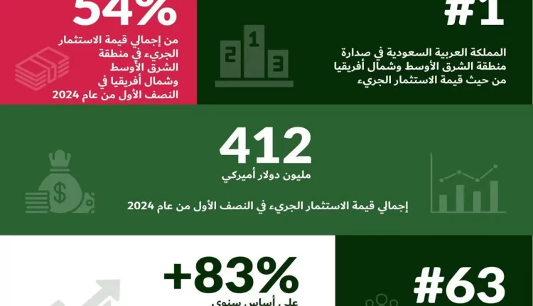 كشف تقرير عن الاستثمار الجريء في المملكة العربية السعودية، أن المملكة حافظت على صدارتها في منطقة الشرق الأوسط وشمال أفريقيا بوصفها الأعلى من حيث قيمة الاستثمار الجريء في النصف الأول من عام 2024 الذي شهد تنفيذ استثمارات بلغت 1.5 مليار ريال (412 مليون دولار) في شركات ناشئة سعودية.