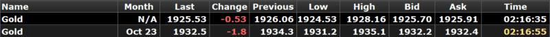 انخفض الذهب في المعاملات الفورية 0.03%، إلى 1925.53 دولار للأوقية (الأونصة)، وانكمشت العقود الأمريكية الآجلة (أكتوبر 2023) للذهب، بنسبة 0.10%، عند 1932.5 دولار.