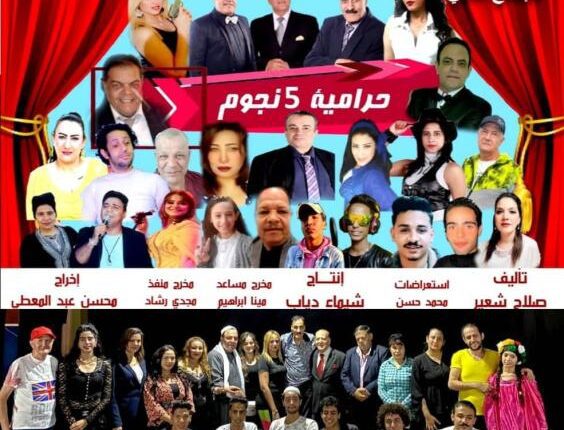 تقدم الشيماء للإنتاج الفني العرض المسرحي الكوميدي الاستعراضيّ «حرامية 5 نجوم» يوم 26 أكتوبر المقبل، من تأليف صلاح شعير، وإخراج محسن عبد المعطي، وإنتاج شيماء دياب.