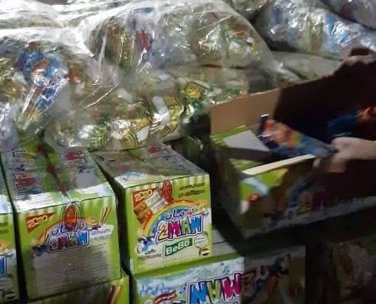 وأسفرت الحملة عن15000عبوه لوليتا،وعصائر،ومقرمشات بإجمالي 2طن أغذية أطفال وصغار السن رديئة وفاسدة،وغير صالحة للاستهلاك الآدمي وبدون فواتير،وتحرر على الفور محضر
