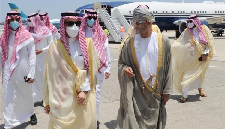 وكان في استقبال وزير الخارجية السعودي والوفد المرافق له لدى وصولهم المطار، بدر بن حمد بن حمود البوسعيدي وزير خارجية سلطنة عُمان.