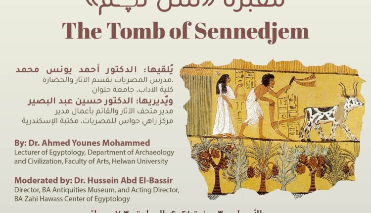تلقي المحاضرة الضوء على مقبرة طيبية في منطقة دير المدينة على الضفة الغربية بطيبة، إذ تنتمي لخادم في دار الحق يُدعى “سن نـﭼـم”، والذي عاش في عهدي كل من الملك “سيتي الأول” والملك “رمسيس الثاني”، واسمه يعنى “الأخ الجميل أو اللطيف”