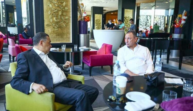 استقبل محمود الخطيب، رئيس النادي الأهلي، ورئيس بعثة الفريق الأول لكرة القدم بالنادي، أشرف إبراهيم سفير مصر بالمغرب، في مقر إقامة الأهلي في مدينة الدار البيضاء بالمغرب.