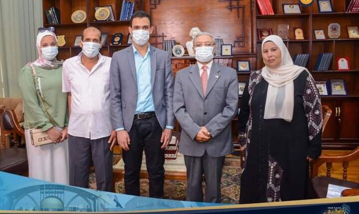 رئيس جامعة طنطا يكرم الطالب عبد المنعم احمد مخترع علاج السرطان