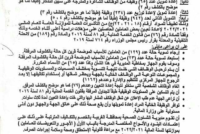 وسيتم نشر كشوف بااسماء الموظفين الحاصلين علي التسوية