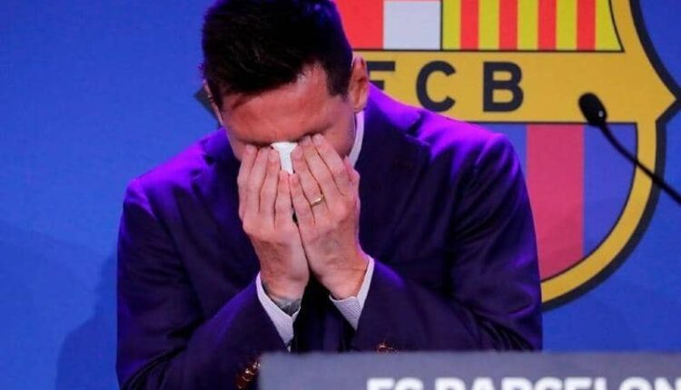 وظهر ميسي متأثرا حيث لم يتمالك نفسه وأجهش بالبكاء في مؤتمره الصحفي الوداعي في برشلونة الأحد الماضي، قبل أن تقوم زوجته أنتونيلا روكوزو بإعطائه منديلا ورقيا لمسح دموعه.