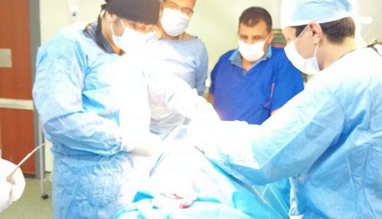 وعلى الفور تعامل الفريق المكون من الدكتور محمد عباده أخصائي الجراحه العامة ورئيس قسم الطوارئ و الدكتور محمد سالم إستشارى التخدير و الدكتور محمد نبيل النجار أخصائى الجراحة العامة و الدكتور رامز النجار جراحة عامة ، وتمريض العمليات والإستقبال وتم إزالة الجسم الغريب وإستكشاف الجرح وخرج المريض من العمليات فى وضع مستقر حيث تم إصلاح العضلة وإزالة باقى الملوثات والحالة الآن محجوزة بقسم الجراحة تحت الملاحظة والعلاج .