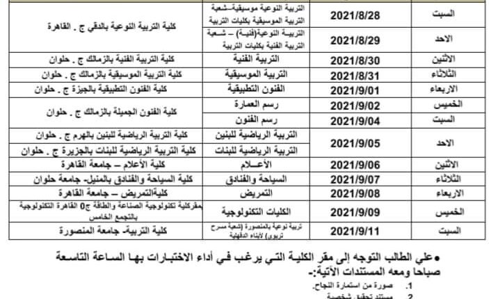 على أن يتم إجراء هذه الاختبارات في الأماكن والمواعيد المحددة