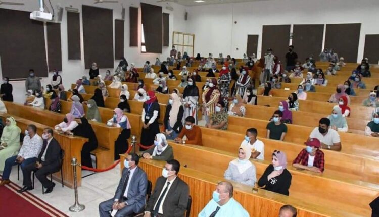 بحضور وكلاء الكلية و رؤساء الأقسام وأمين الكلية وأعضاء هيئة التدريس بالكلية وأعضاء وحدة الدعم الأكاديمى و الإداريين والطلاب الجدد والقدامى.