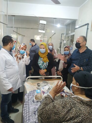 يرافقها الدكتور محمد الحلفاوي مدير الإدارة الصحية والدكتور السيد الشيشتاوي مدير المستشفى وفريق العمل التنفيذى بإدارة المتابعة والتفتيش المالى والإدارى، وذلك أثناء المرور على مستشفى لمتابعة انضباط سير العاملين وحسن سير العمل بها ومدى التزامهم بالمواعيد الرسمية للحضور والانصراف، والوقوف على الاحتياجات الفعلية، و مدى تطبيق الاجراءات الوقائية الاحترازية لمواجهة فيروس كورونا.
