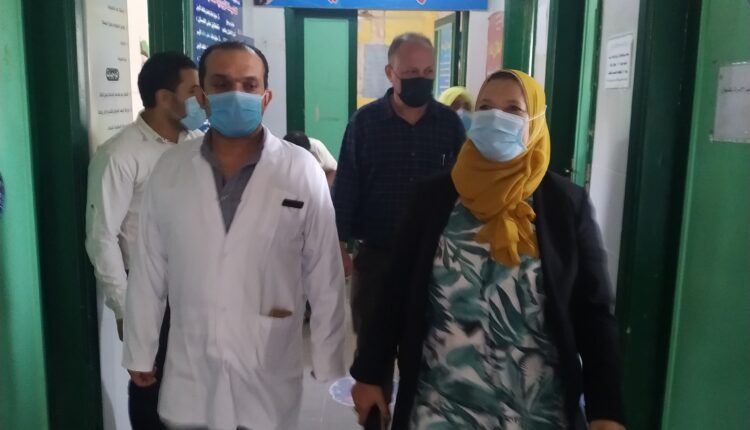 يرافقها الدكتور محمد الحلفاوي مدير الإدارة الصحية والدكتور السيد الشيشتاوي مدير المستشفى وفريق العمل التنفيذى بإدارة المتابعة والتفتيش المالى والإدارى، وذلك أثناء المرور على مستشفى لمتابعة انضباط سير العاملين وحسن سير العمل بها ومدى التزامهم بالمواعيد الرسمية للحضور والانصراف، والوقوف على الاحتياجات الفعلية، و مدى تطبيق الاجراءات الوقائية الاحترازية لمواجهة فيروس كورونا.