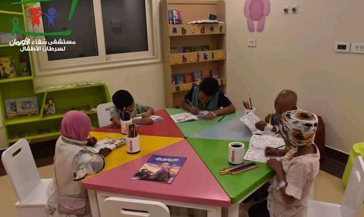 افتتحت مستشفى شفاءالأورمان لسرطان الأطفال بطيبة الجديدة شمال محافظة الأقصر، مكتبة متكاملة للاطفال المرضي