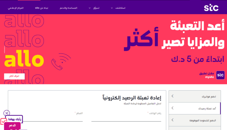 تعبئة رصيد stc من خلال الموقع الرسمي