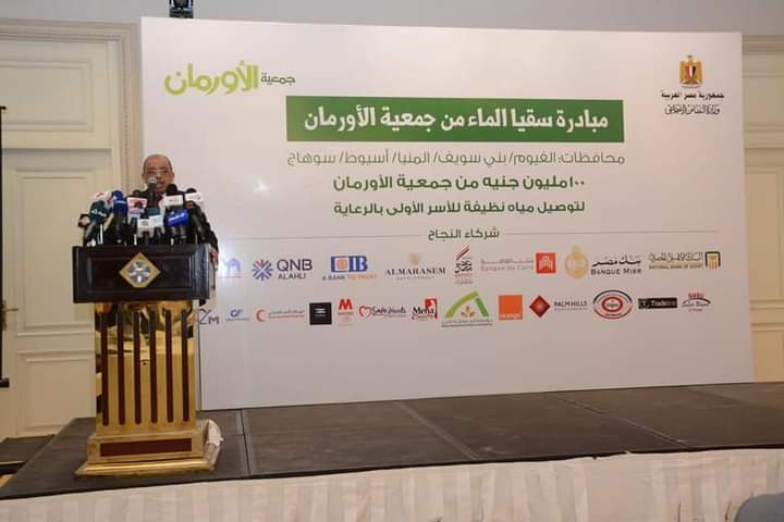 جاء ذلك خلال كلمة وزير التنمية المحلية فى المؤتمر التحضيرى لإطلاق مبادرة ” سقيا الماء من الأورمان” لدعم جهود تنفيذ المبادرة الرئاسية ” حياة كريمة ” من خلال دعم توصيل مياه الشرب النقية لمنازل الأسر غير القادرة فى خمس محافظات هي ( الفيوم وبنى سويف والمنيا وسوهاج وأسيوط ) حيث رصدت الجمعية مبلغ 100 مليون جنيه لهذه المبادرة ، شارك فى الاحتفالية المهندس حسام القبانى رئيس مجلس إدارة جمعية الأورمان وعدد من الوزراء والمحافظين وقيادات جمعية الأورمان .