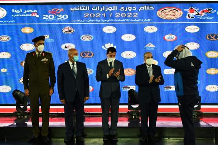 شهد ، مساء اليوم ،الدكتور أشرف صبحي وزير الشباب والرياضة ،والفريق كامل الوزير وزير النقل ،واللواء مهندس محمد أحمد مرسي وزير الإنتاج الحربي، والسيد اللواء أركان حرب خالد شكري رئيس جهاز الرياضة العسكري نائباً عن وزير الدفاع ؛ ختام النسخة الثانية من دوري الوزارات للعاملين بالجهاز الإداري للدولة تحت رعاية الدكتور مصطفي مدبولي رئيس مجلس الوزراء ، بحضور لفيف من قيادات وزارة الشباب والرياضة والوزارات المشاركة والإعلاميين ورؤساء الأندية والاتحادات والشخصيات العامة ونجوم كرة القدم والرياضة المصرية.