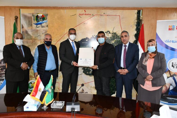 ومن جانبه أشار رئيس المنطقة الخامسة بجهاز تنمية المشروعات، أننا اليوم نستكمل باكورة الأعمال والأنشطة التي ينفذها فرع جهاز تنمية المشروعات على أرض المحافظة، من خلال تسليم 3 عقود للإقراض متناهي الصغر لعدد 3 جمعيات أهلية بقيمة 5,6 مليون جنيه، نستهدف من خلالها تنفيذ 1130 مشروعاً، توفر حوالي 1250 فرصة عمل في نطاق قري المبادرة الرئاسية “حياة كريمة” وتسليم 5 شيكات إقراض متناهي الصغر بقيمة 300 ألف جنيه، لتنفيذ مشروعات ورش تصنيع السجاد، وإحلال وتجديد السيارات للعمل بالغاز الطبيعي، والحرف والمنتجات اليدوية، فضلاً عن تكريم المشاركين في فعاليات معرض “تراثنا 2021″، وتكريم الحاصلين علي تدريب المهارات الحياتية والسلوكية من خلال مشروع تحسين فرص التشغيل لدي الغير.