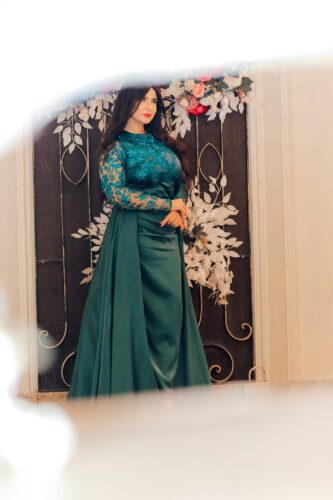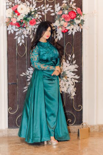 تألقت عارضة الازياء ياسمين على خلال جلسة تصوير جديدة لها وظهرت ياسمين مرتدية فستان باللون الجرى اللامع، لمصمم الازياء المصممة المصرية فرح ويدنج وأضفت للإطلالة أناقة بارتداء مجوهرات بسيطة.