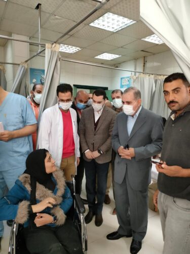 محافظ كفر الشيخ ونائبه ينتقلان للمستشفى العام للاطمئنان على مصابي حادث انقلاب سيارة