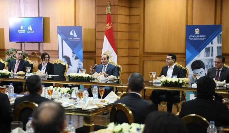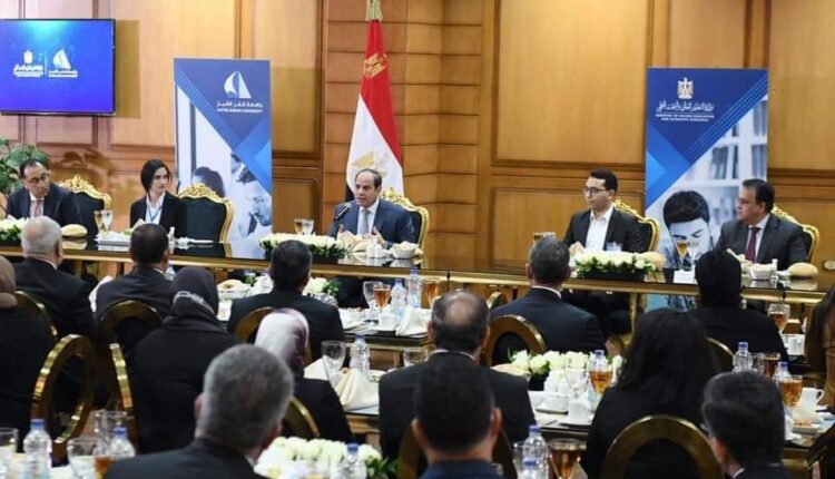 وقد أكد السيد الرئيس حرص الدولة على الارتقاء بمستوى الجامعات الحكومية بالتوازي مع إنشاء الجامعات الجديدة على مستوى الجمهورية، وذلك وفق نهج يعتمد على توفير التعليم والتدريب المناسب لسوق العمل الحالي والمستقبلي، وفي إطار الأولوية القصوى للدولة للاهتمام بالشباب وتدريبهم وتأهيلهم في كافة المجالات باعتبارهم الأمل والكنز الحقيقي لمصر لتحقيق التنمية الشاملة والمستدامة خلال السنوات المقبلة.